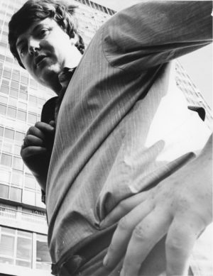 Første møte: Don Powell i Oslo i november 1973. En ung Yan Friis, da fra Arbeiderbladet, følger nøye med. Foto: Det Nye