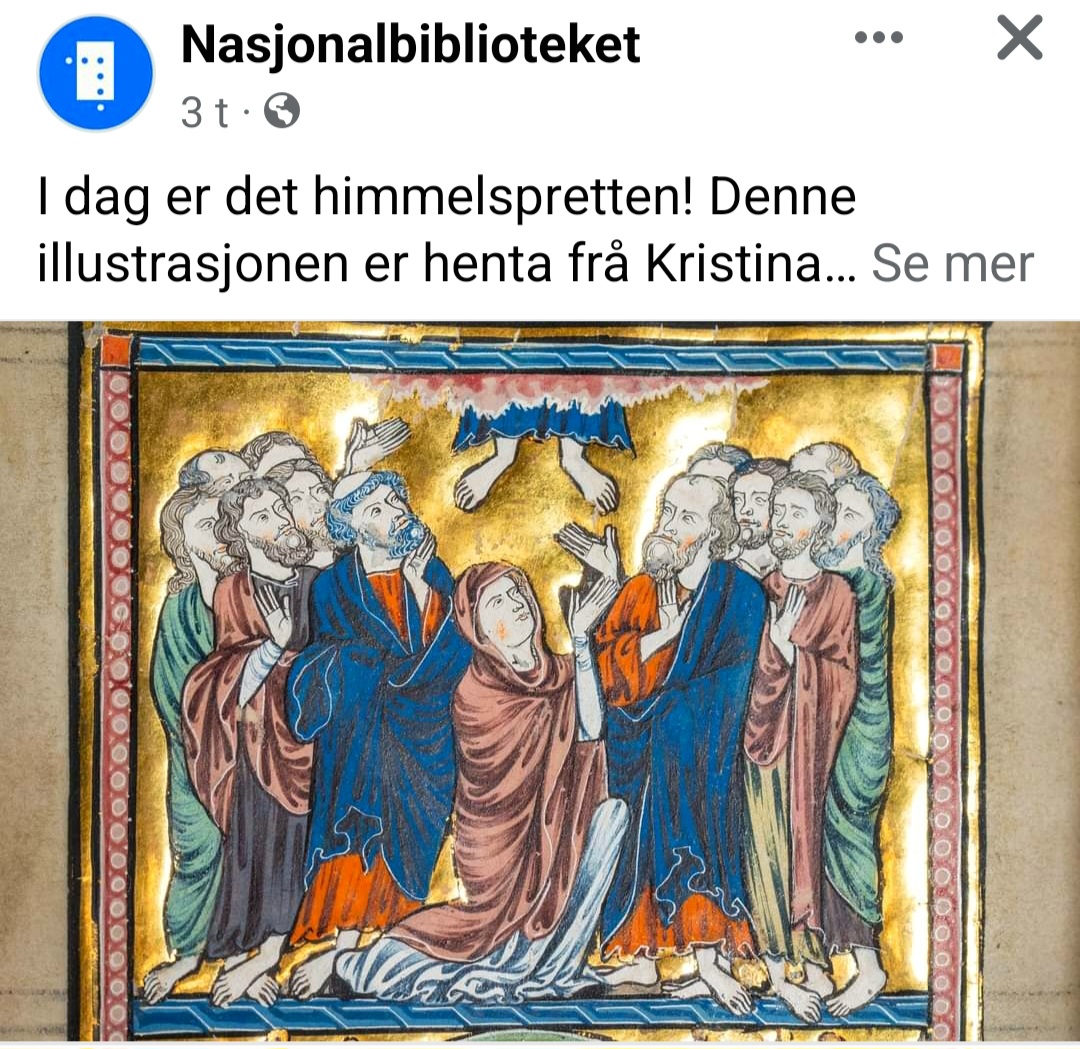 Innlegget som Norges nasjonalbibliotek publiserte på Kristi himmelfartsdag, 9. mai 2024. Skjermdump.