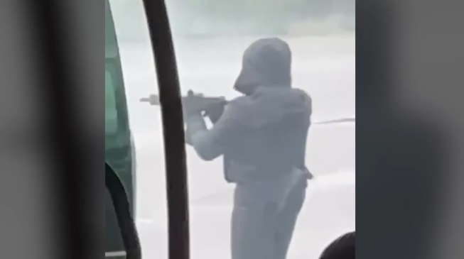 Hele angrepet ble fanget opp på video. De fire angriperne ser ut til å være bevænpet med kalasjnikov: