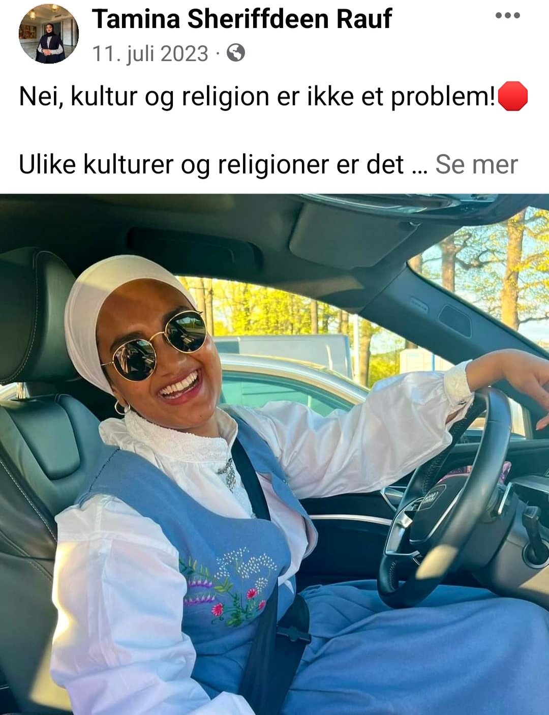 Tamina Sheriffdeen Rauf er muslim fra Sri Lanka, født i Norge. Hun er glad i multikultur og representerer Ap i 17. mai-komiteen. Skjermdump.