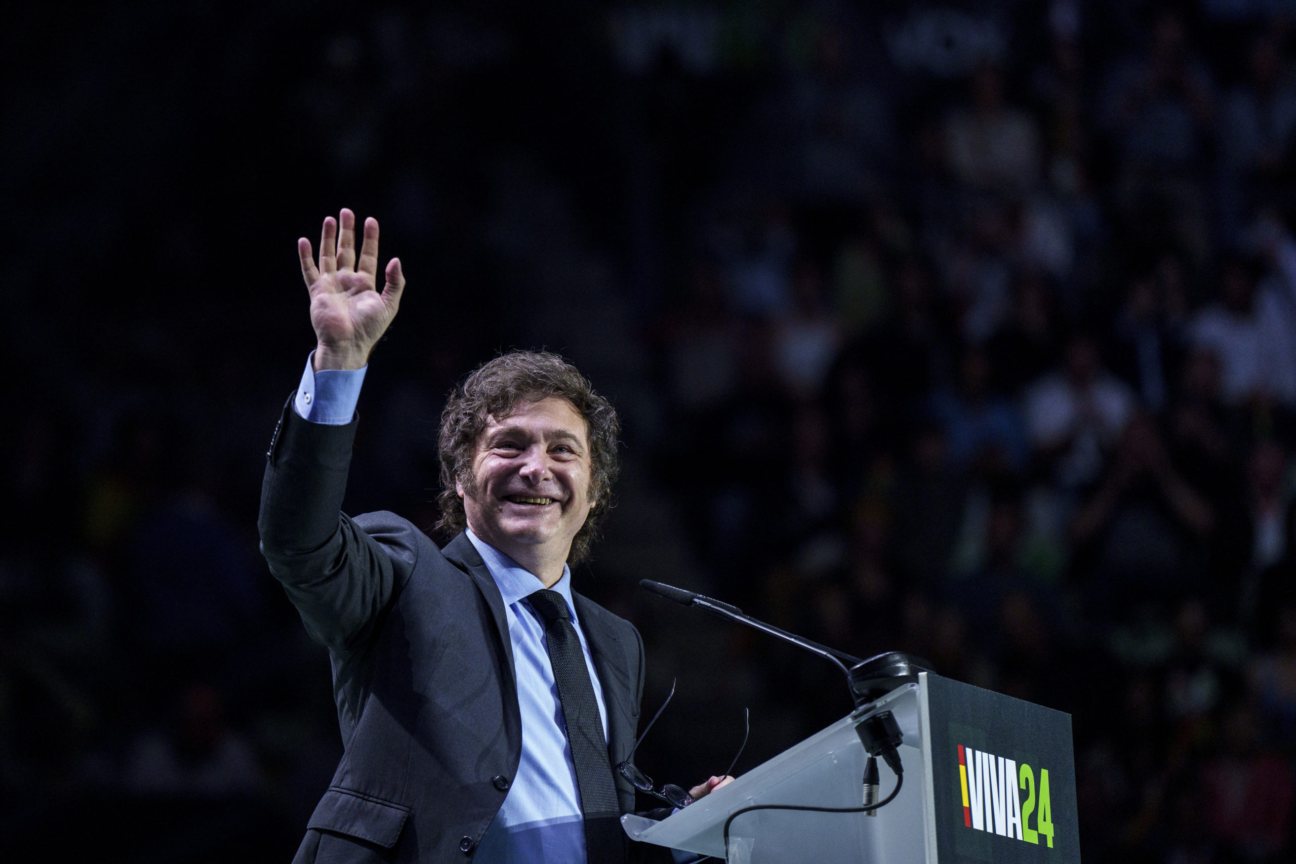 Javier Milei taler til det spanske partiet Vox’ arrangement Europa Viva 24 i Madrid den 19. mai 2024. Foto: Manu Fernandez / AP / NTB.