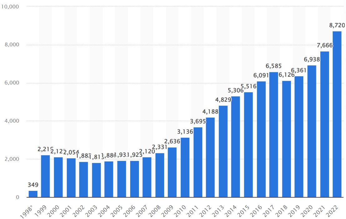 Utviklingen av medisinsk assistert avlivning i Nederland 1998–2022.