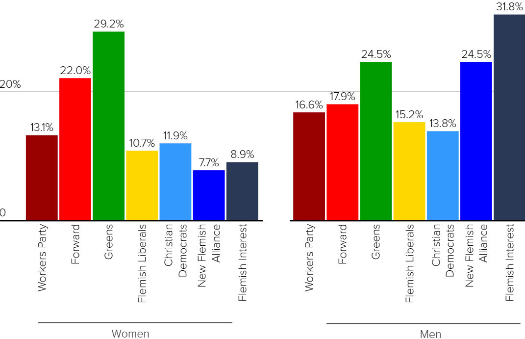 Samme tendens gjør seg gjeldende i land efter land. I Belgia får det innvandringsskeptiske og separatistiske partiet Vlaams Belang (Flemish Interest) stor oppslutning fra de unge i Flandern – spesielt fra unge menn.