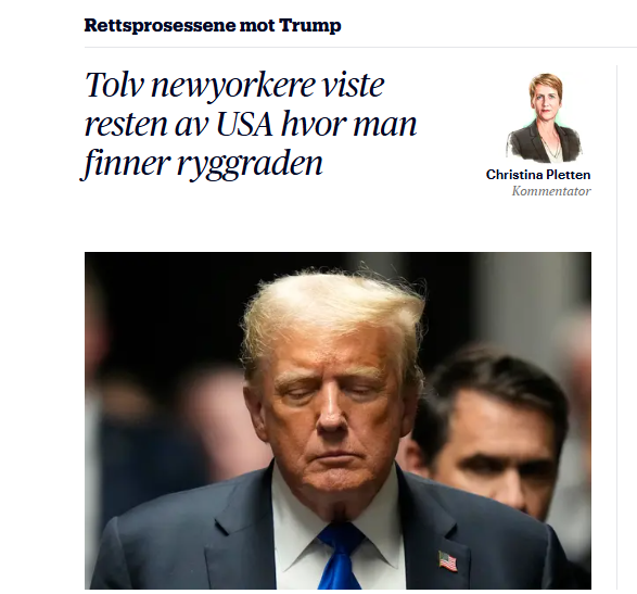 Det samme går igjen i alle norske medier med journalister som lider av uhelbredelig Trump Derangement Syndrom, TDS. Det var tolv helt vanlige mennesker som felte Trump, hans likemenn!