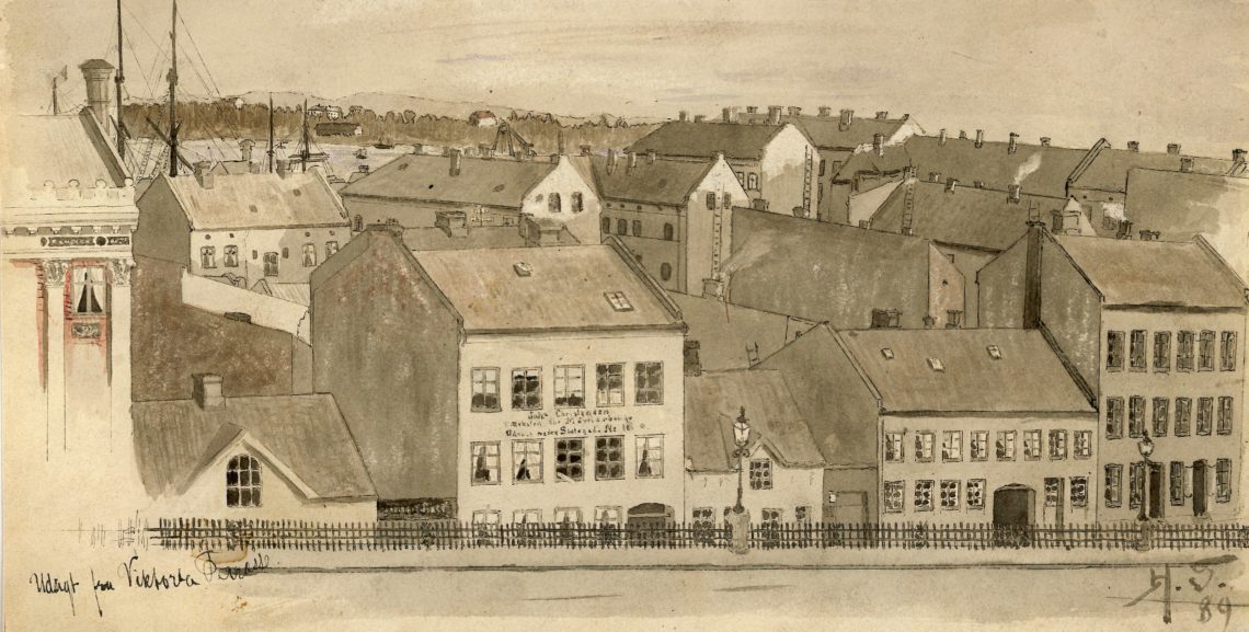 Tusj, penn og lavering på papir, 18,2 x 28,5 cm, Oslo Museum.