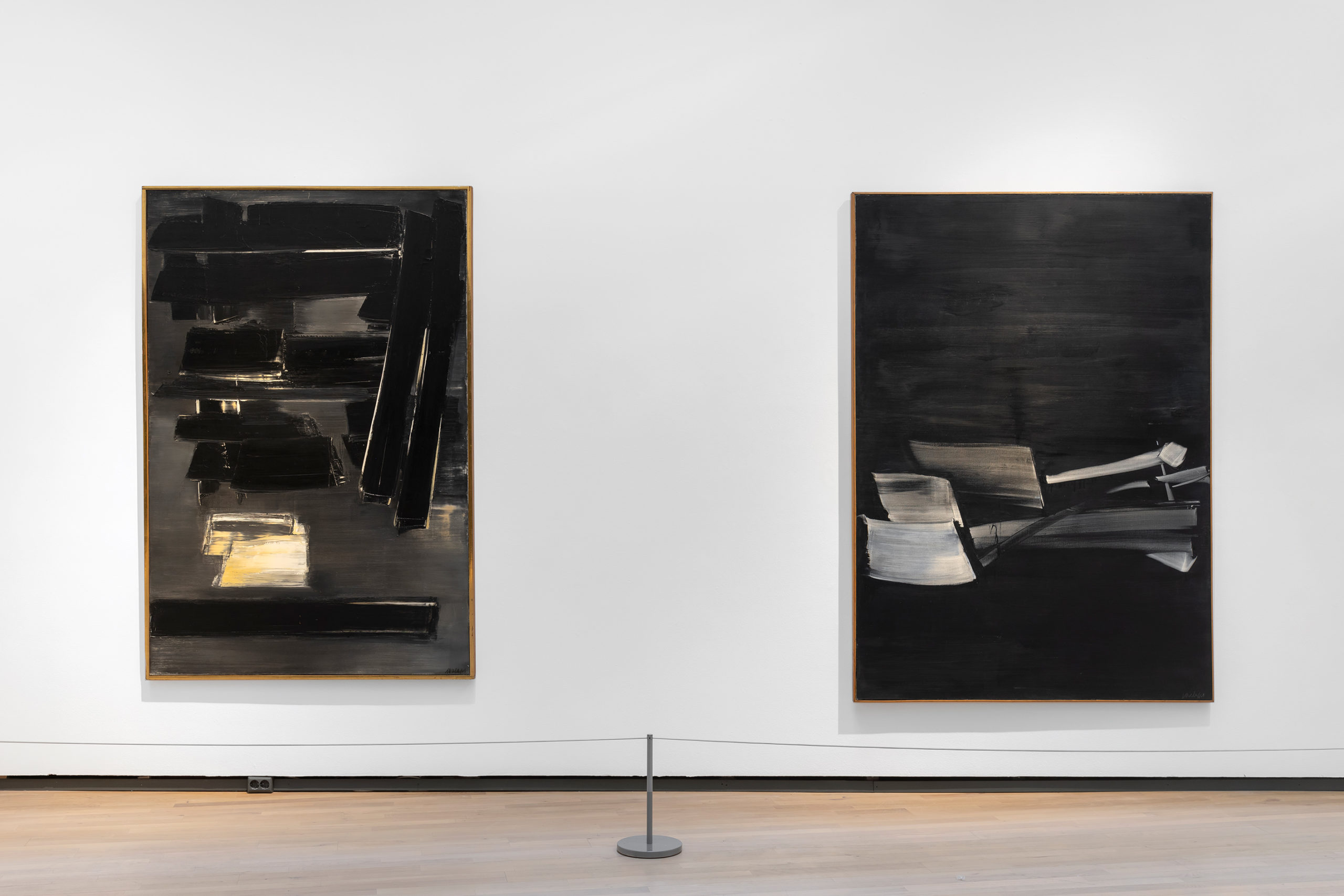 Pierre Soulages, Maleri, 20. desember, 58 (1958) og Maleri 14. juni, 63 (1963). Henie Onstad-samlingen. Foto: Øystein Thorvaldsen / Henie Onstad Kunstsenter.