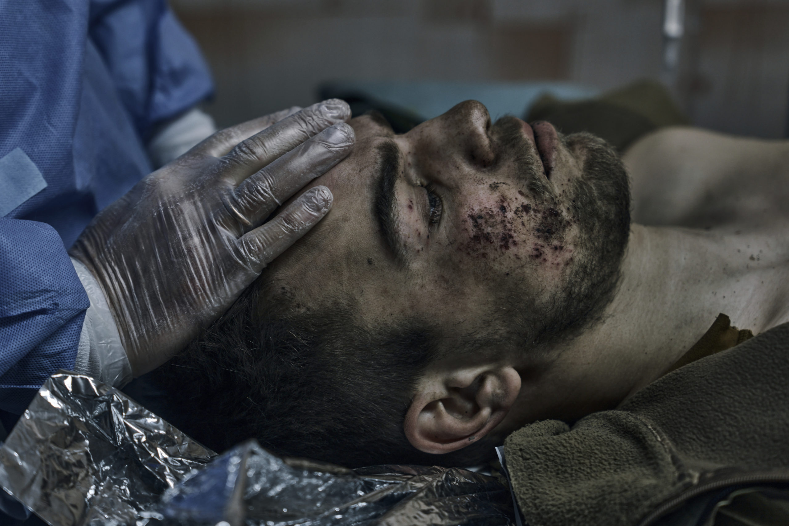 Militærmedisinere gir førstehjelp til en soldat som ble såret i et slag i Bakhmut i den ukrainske Donetsk-regionen søndag 9. april 2023. Foto: Libkos / AP / NTB.