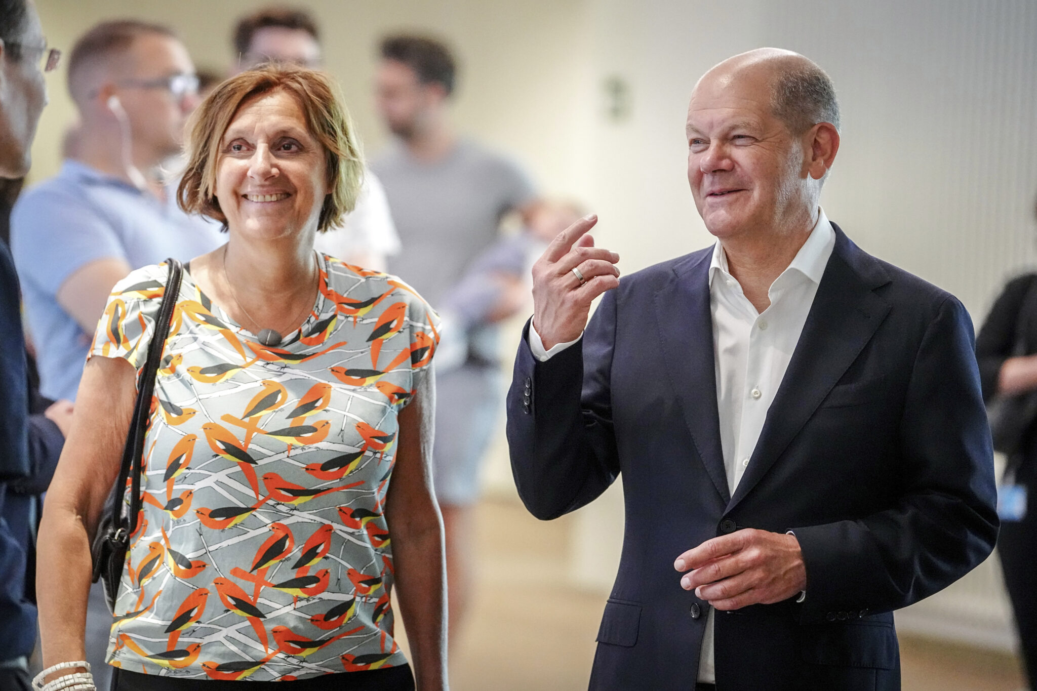 Tysklands statsminister Olaf Scholz og hans kone Britta Ernst står i kø for å stemme ved EU-valget i Potsdam den 9. juni 2024. Foto: Kay Nietfeld / DPA via AP / NTB.