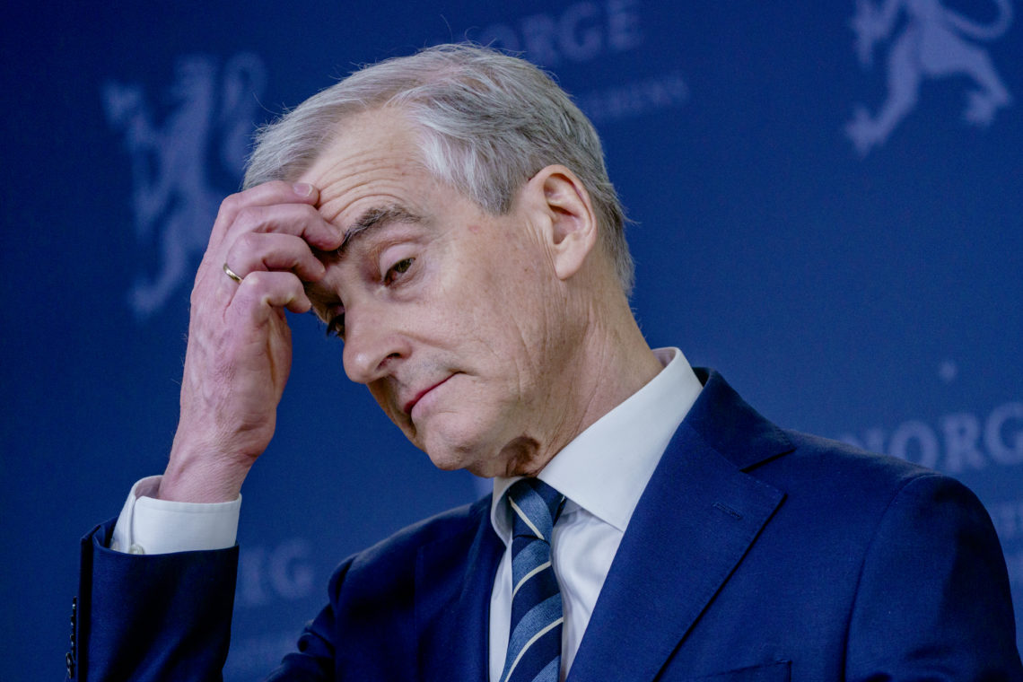 Ingvild Kjerkol, Bjørnar Skjæran, Marte Mjøs Persen, Anette Trettebergstuen, Anniken Huitfeldt og Hadia Tajik stod sammen med Jonas Gahr Støre på Slottsplassen 14. oktober 2021.