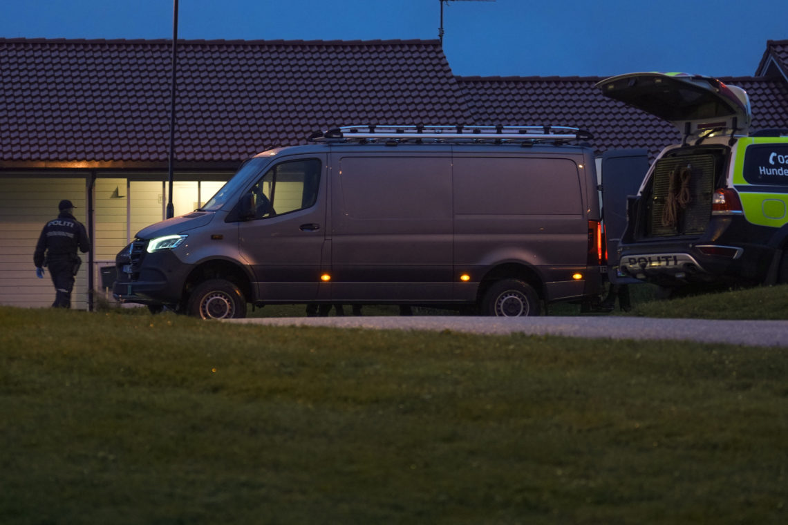 Rundt midnatt er det minst tre uniformerte politibiler på plass i et rekkehusområde på Åkra. Krimteknikere er også på stedet natt til søndag.
