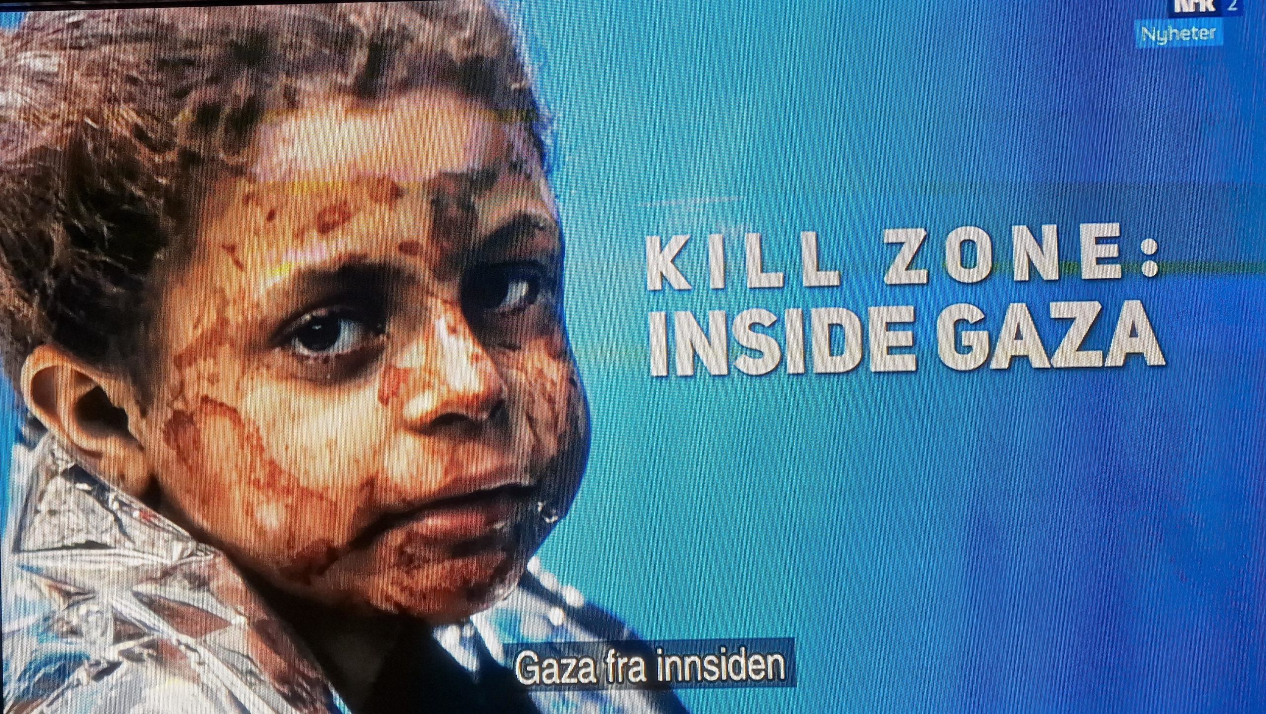 «Dette er et intimt portrett av livet i møte med Israels voldsomme, militære angrep.» Og NRKs intro, som ikke var like tørr og nøktern som for Supernova, der de advarte mot brutalitet.