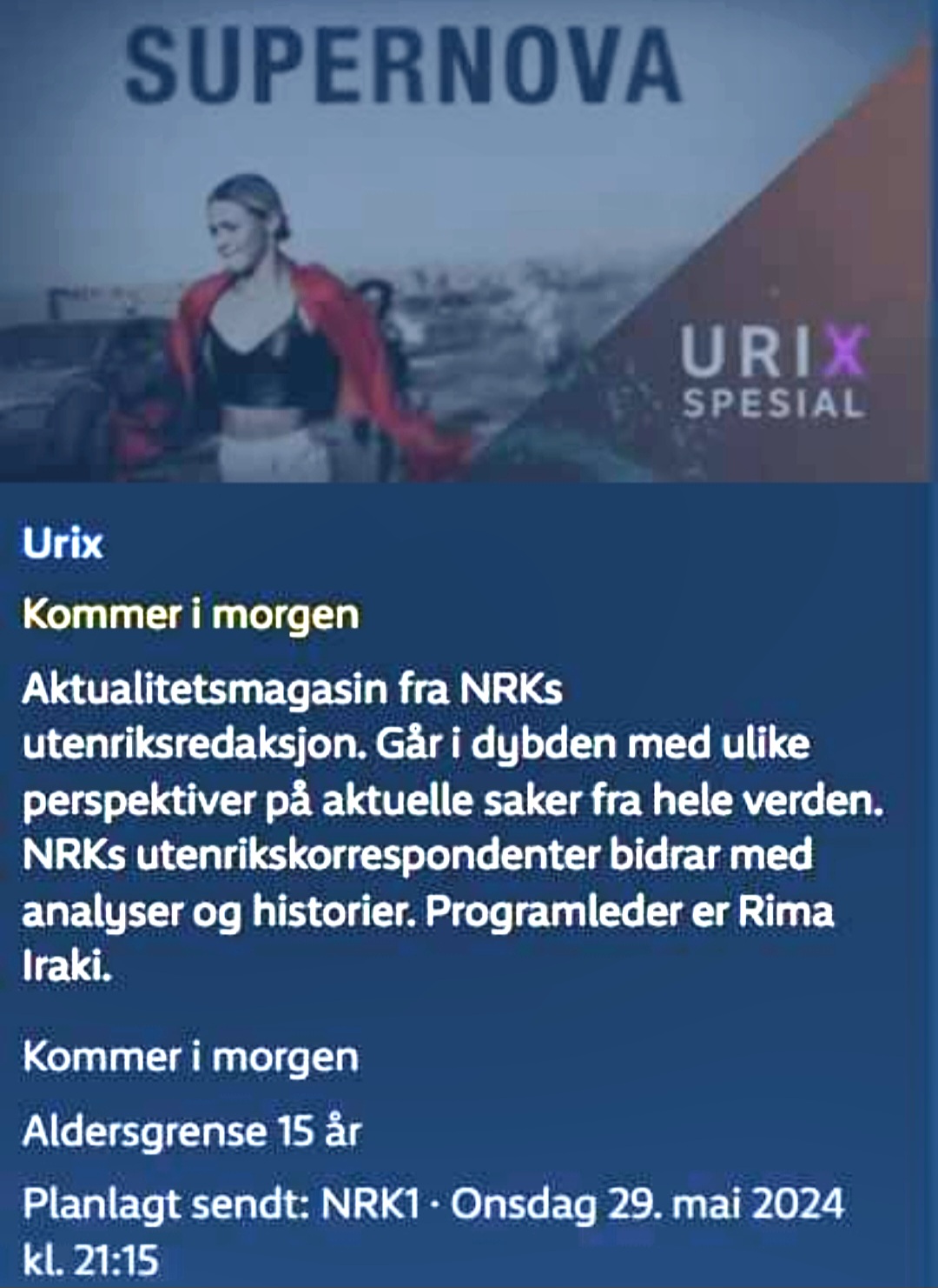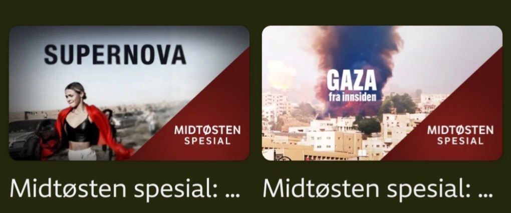 Tirsdag viste NRK den omtalte dokumentaren om massakren på over 360 unge deltakere på musikkfestivalen Supernova i Israel 7. oktober. Men de kringkastet ikke at den skulle sendes, og hos mange var programposten på NRK2 angitt som «ingen sending». I tillegg var det klistret på en Gaza-film i etterkant, tydeligvis ment å utslette inntrykk tv-publikum måtte ha fått fra Supernova-filmen. Pluss at de vanlige «ekspertene» var satt til å kommentere det hele.