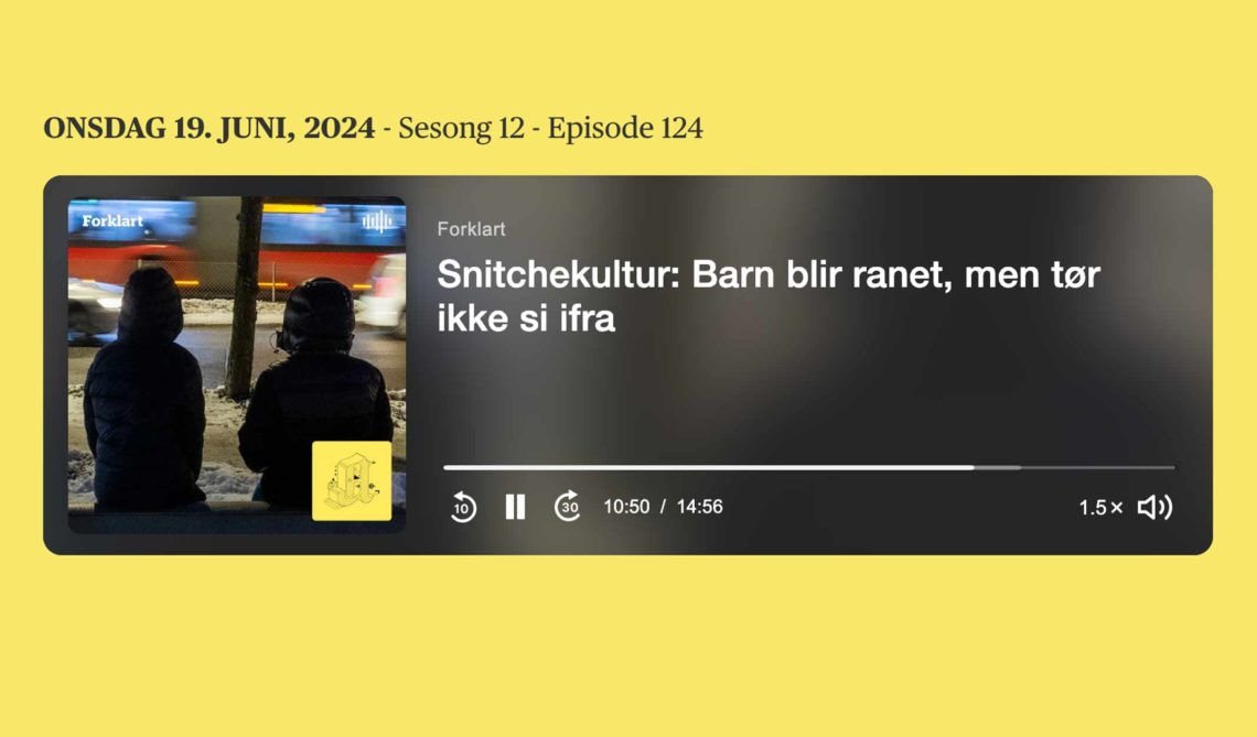 Podcast-episoden har tittelen «Snitchekultur: Barn blir ranet, men tør ikke si fra».
