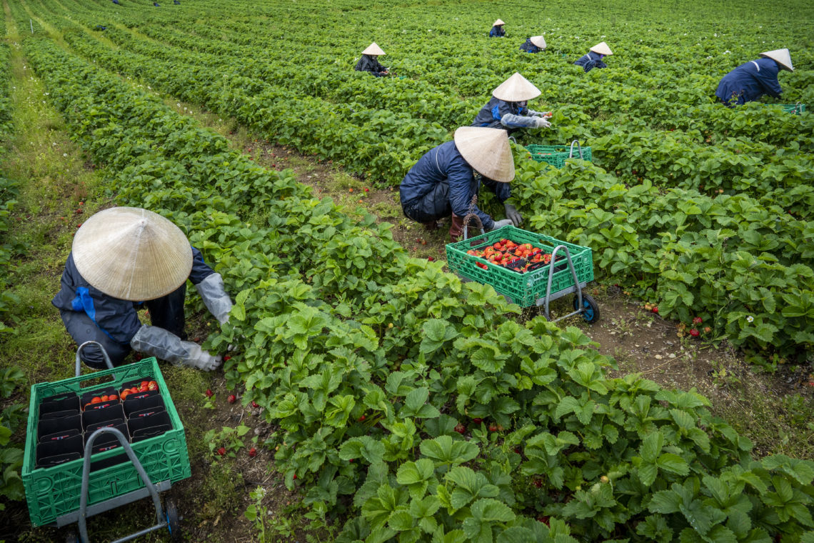 Sesongarbeiderne hans er fra Romania, noen fra Polen, mens en av plukkerne er fra Nepal.