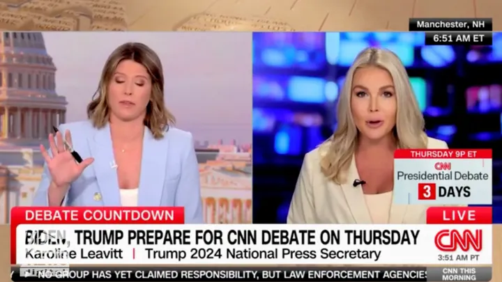Leavitt ble brått avbrutt under et intervju med CNN-programleder Kasie Hunt mandag morgen, etter å ha kritisert CNN-programlederne Jake Tapper og Dana Bash, som skal lede torsdagens debatt mellom Trump og Biden.