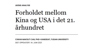 I juni 2021 skrev også Ciwan Maksut Can, daværende PhD-kandidat ved Fudan University i Shanghai en «Ukens Analyse». Teksten ble publisert hos Atlanterhavskomiteen.
