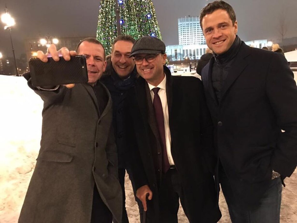 I 2016 rejste hele FPÖ-partitoppen til Moskva for at indgå en venskabsaftale med Putins parti, og her offentliggjorde de en begejstret selfie fra Moskva. Partiet tog imod russiske penge og russiske topjobs, de holdt hemmelige møder, og de spredte villigt russisk propaganda, noterede efterretningschefen.
