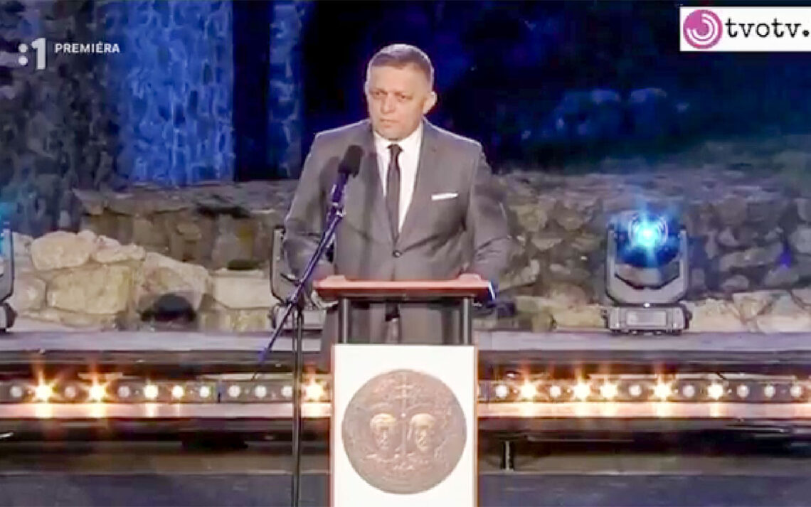Slovakias statsminister Robert Fico har opptrådt offentlig for første gang siden attentatet i mai. Vakkert oppsummerte han landets kristenkonservative arv og roste Viktor Orbáns fredsinitiativ: – Han taler fredens sak – ikke krigens.