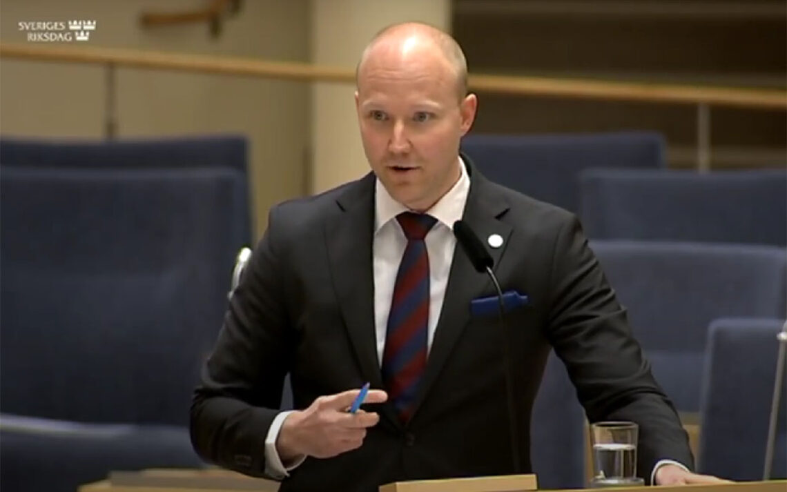 – Ved å øke inntektskravene vil vi styrke insentivet for familiemedlemmer til å komme i arbeid og bli selvforsørgende, sier Ludvig Aspling fra Sverigedemokratene.