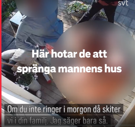 En video fra svensk politi viser hvordan tre ukjente menn truer med å sprenge huset til en mann i Uppsala. «Vi driter i familien din».