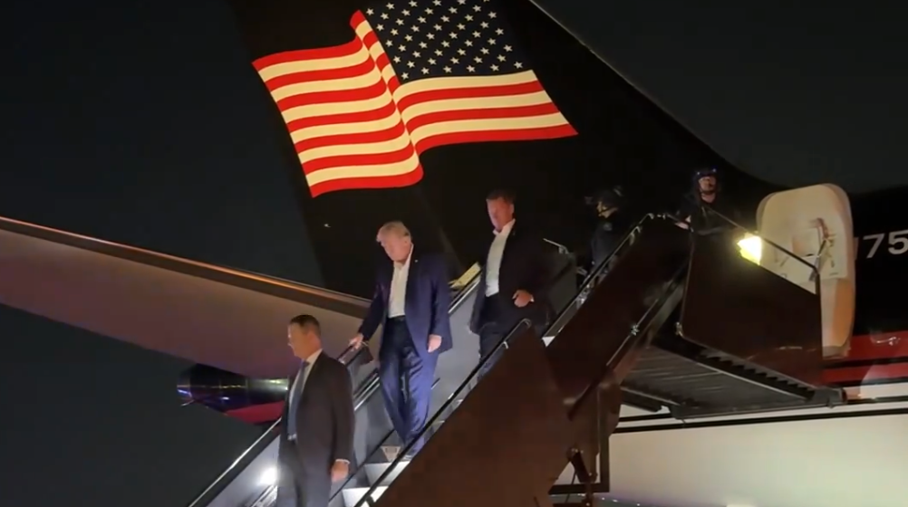 Trump landet på Newark-flyplassen i New Jersey en halv time over midnatt og gikk selv ned flytrappa. Han går løst og ledig. Dette er bilder som er uvurderlige: Trump er sterkere enn kreftene som som vil drepe ham.
