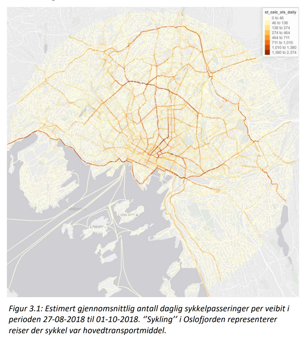 Ifølge Transportøkonomisk Institutt, så er det vanskelig å anslå utbredelsen av sykling i Oslo, selv om det i dette tilfellet er brukt tellere som automatisk registrerer sykkelturer hver dag. Deres rapport fra 2023 har tall fra 2018 og store deler av Oslo, som Groruddalen, er ikke med i beregningene. De skriver at mangelfulle tellinger av sykkelpasseringer er et planleggingsproblem for kommunen. Sykkeltellere kan per dags dato ikke skille mellom sykler og el-sparkesykler, noe det har vært et stort behov for, skriver de i en rapport fra 2022.