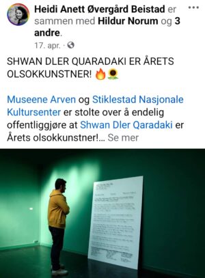 Tilbake til årets olsokkunstner. Shwan Dler Qaradaki hadde vært på flukt gjennom Europa i to år før han søkte asyl i Norge i 1999, ifølge et intervju med Fædrelandsvennen i 2013. De spurte ikke hva han flyktet fra gjennom Europa, eller hvorfor han absolutt måtte passere så mange trygge land for å komme seg helt til Norge, eller om han alt hadde søkt asyl i en rekke land.