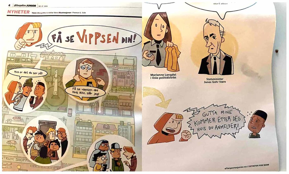 Når Aftenposten Junior skal fortelle om Vipps-ran, tegner de en lyshudet, rødhåret gutt som raner en mørkhudet gutt.