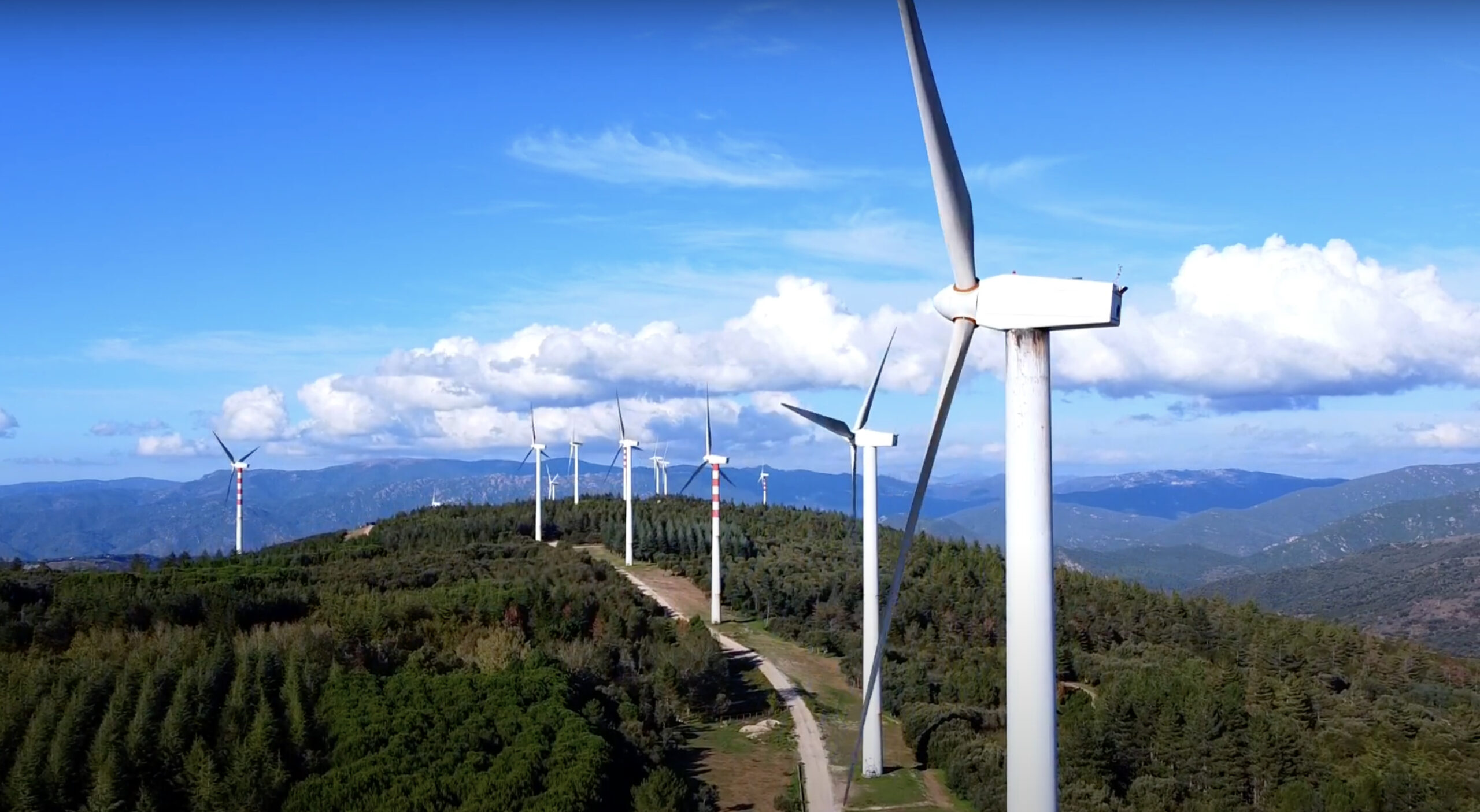 Fra vindparken Sa Turrina Manna i provinsen Sassari nord på Sardinia. Stillbilde: MAX_LC8R Moto-Avventura Sardegna / YouTube.