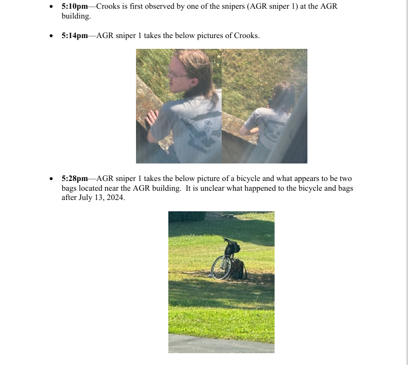 24. Ble sykkelen og veskene som ble identifisert av AGR sniper 1 den 13. juli 2024, knyttet til Crooks?