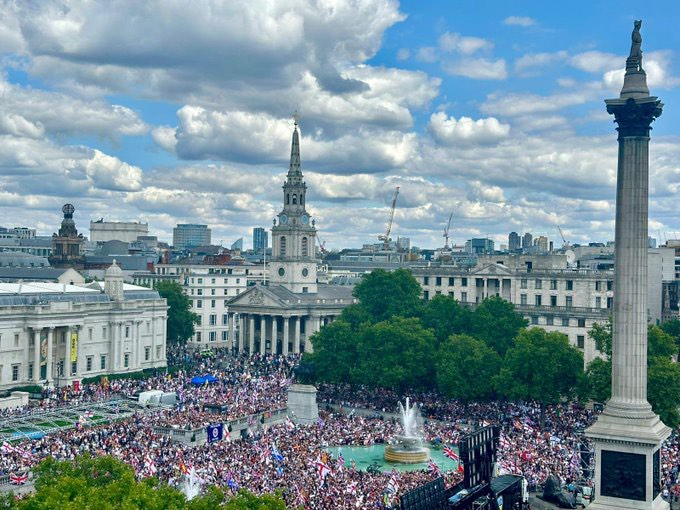 LONDON: I det enorme folkehavet langs Trafalgar Square i London, var det tydelig begeistring for partiet Reform, ledet av Nigel Farage.