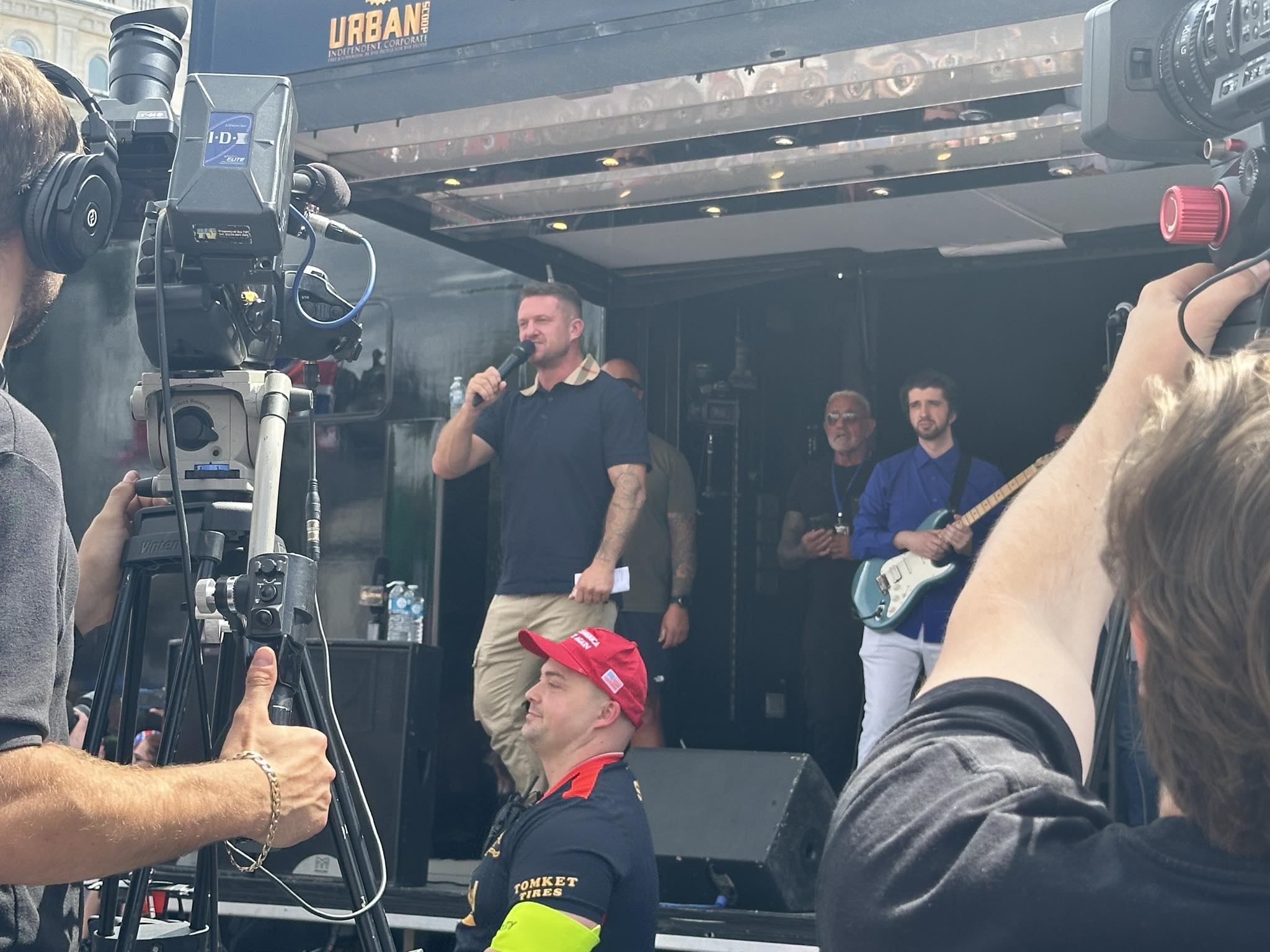 Da hovedarrangør Tommy Robinson gikk på scenen for å tale, spurte han de oppmøtte: