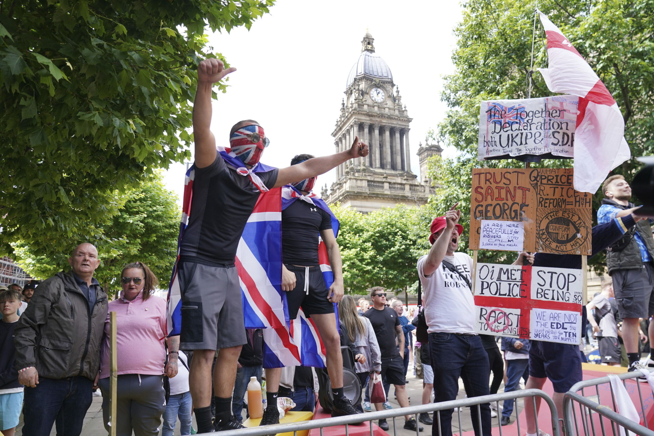 I Leeds ropte rundt 150 personer med St George’s-flagg «pedo-muslimer vekk fra gatene våre» utenfor byens hovedbibliotek og kunstgalleri.