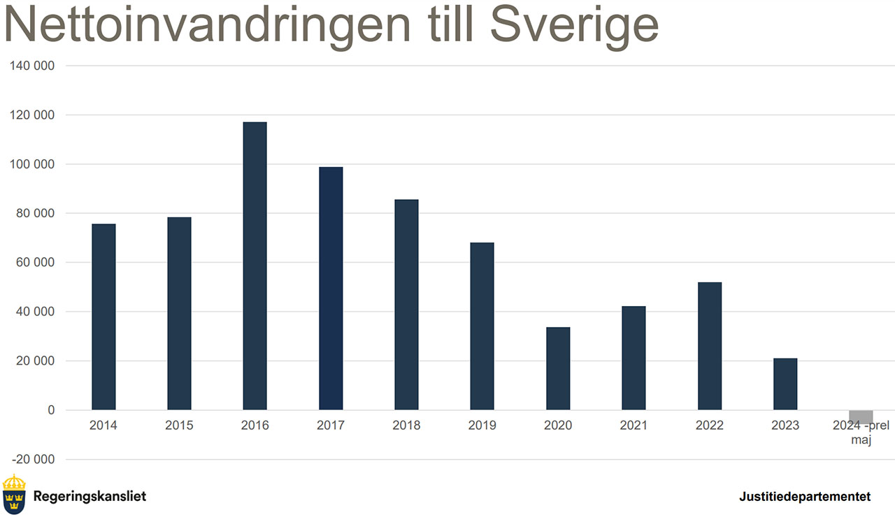 – Regjeringens innsats har gitt resultater. Antallet asylsøknader ser ut til å bli historisk lavt, antallet asylrelaterte oppholdstillatelser fortsetter å synke, og Sverige har netto utvandring for første gang på femti år. Denne utviklingen mot en bærekraftig innvandring er nødvendig for å styrke integreringen og redusere utenforskapet, sier migrasjonsminister Maria Malmer Stenergard.