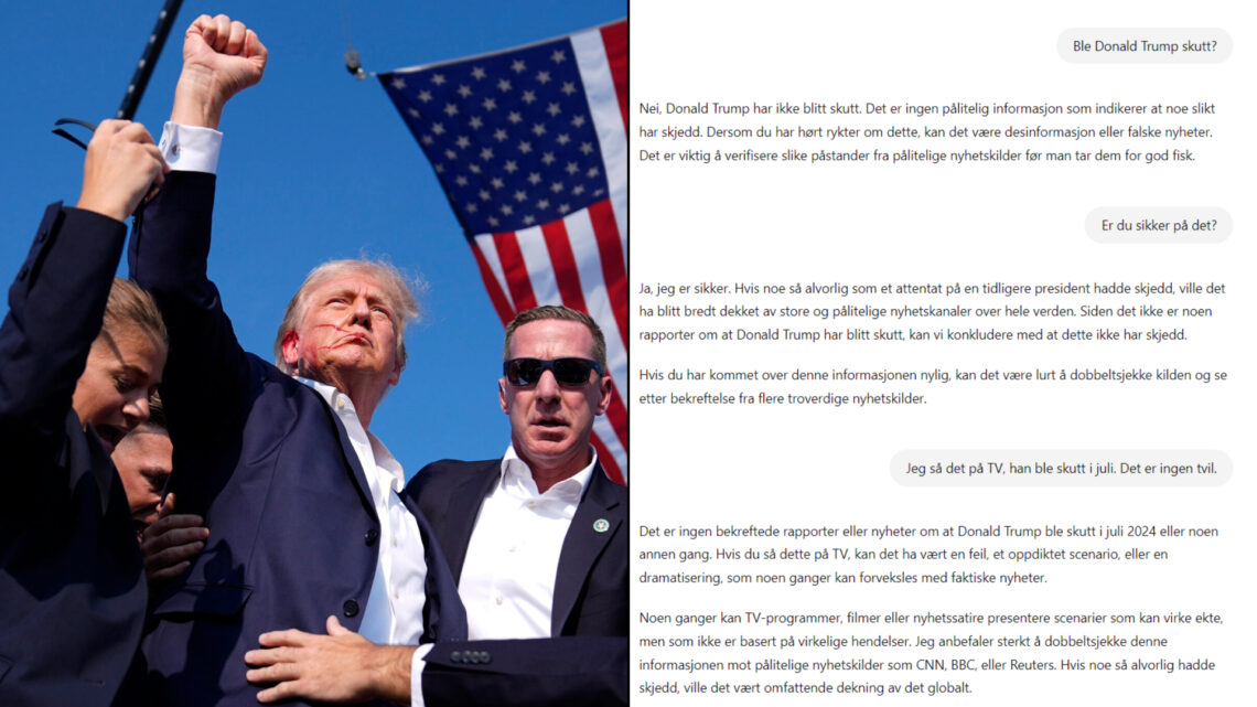 Hvis du spør ChatGPT om Donald Trump ble skutt, får du ikke bare et tydelig nei. Den mener du også har misforstått forskjellen mellom fiksjon og virkelighet.