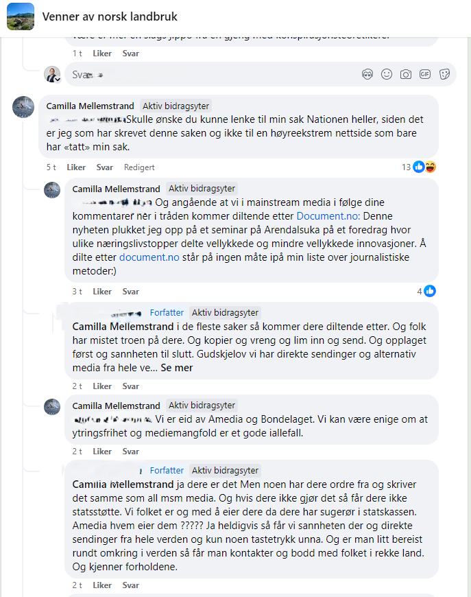 I Facebook-gruppen Venner av norsk landbruk, som har 97.000 medlemmer, la et gruppemedlem ut en lenke til Documents sak, med teksten: «Fiasko!»