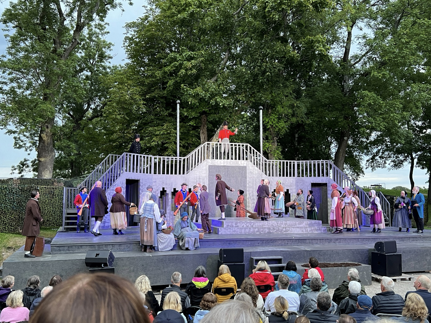 Haugemusikalen Det brenner en ild, som oppføres i Gamlebyen i Fredrikstad i disse dager, er helt fantastisk. Utrolig gode skuespillere/sangere som Hans-Marius Hoff Mittet (Hans Nielsen Hauge), Sanne Kvitnes (Følgesvennen), Alexander Hermansen (presten), Dag Brandth (fogden) – og amtmannen, kapellanen, søsteren, boktrykkeren, ja hele ensemblet. De spiller og synger oss til sterke følelser, både litt latter og tårer i øyekroken. Nydelig fremført solosang, musikk og fullt kor. Det runger på festningen.