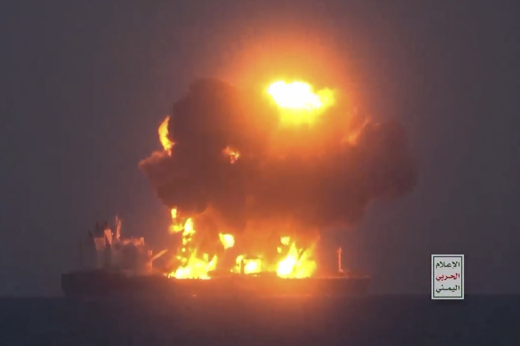 Bidens fiaskoer i utlandet blir god symbolisert ved et forlatt skip som står i brann og muligens oser olje i Rødehavet.