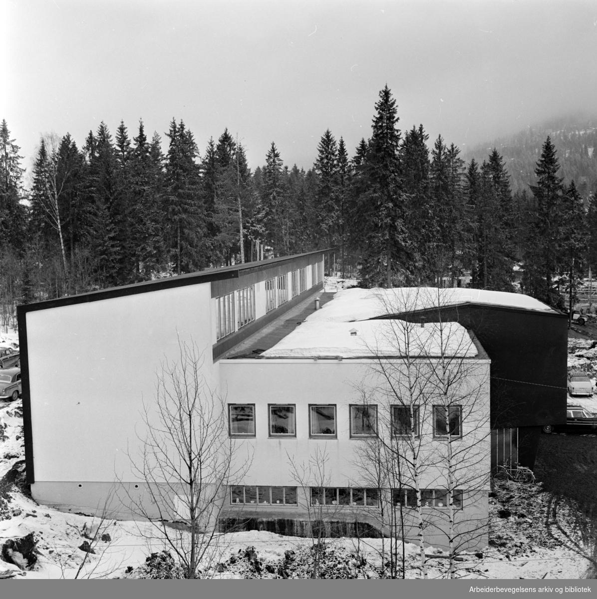 Rudolf Steinerskolen på Huseby. Sto ferdig i mars 1962. Jeg gikk der i høstmånedene i 1963. Veldig lang reisevei. Foto: Arbeiderbevegelsens arkiv og bibliotek.