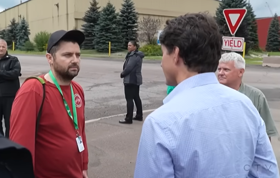 Canadas statsminister Justin Trudeau fikk så hatten passet av en stålarbeider, som fortalte Trudeau at hans politikk har ført til at familien hans sliter med å få endene til å møtes.