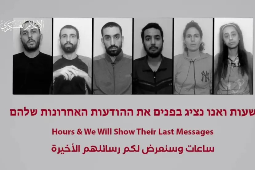 – Hours & We will release their last statements, the video text said in Hebrew, English and Arabic. Exchange deal… freedom & life, military pressure… death and failure.