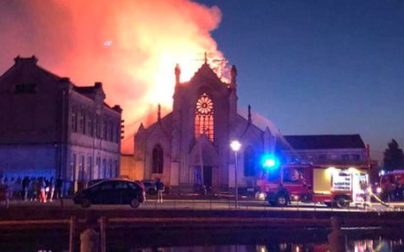 Immaculée-Conception som ligger i en forstad til Saint-Omer, ble påtent rundt kl. 04.30 natt til mandag. Bildene av klokketårnet i flammer vakte sterke følelser.