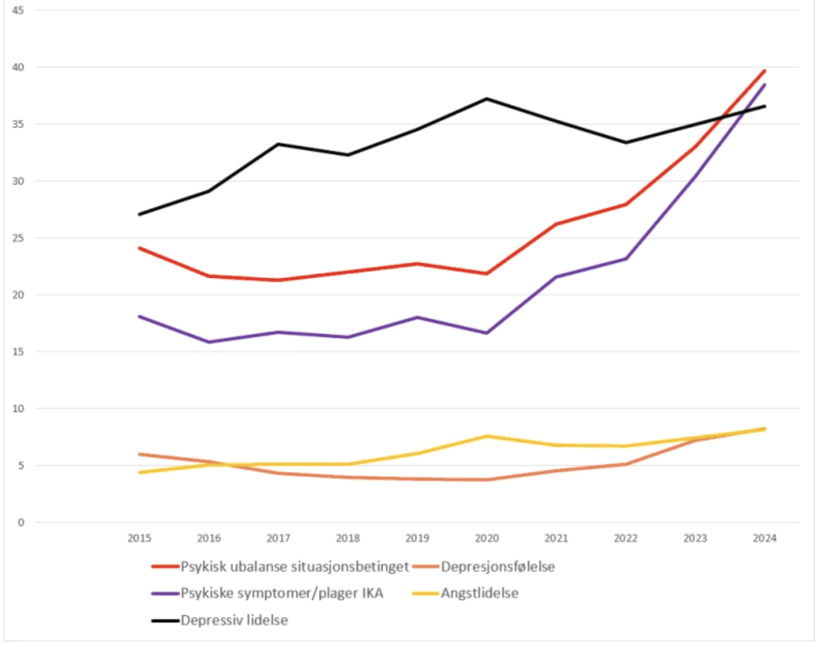 Psykiske symptomer og plager øker mest