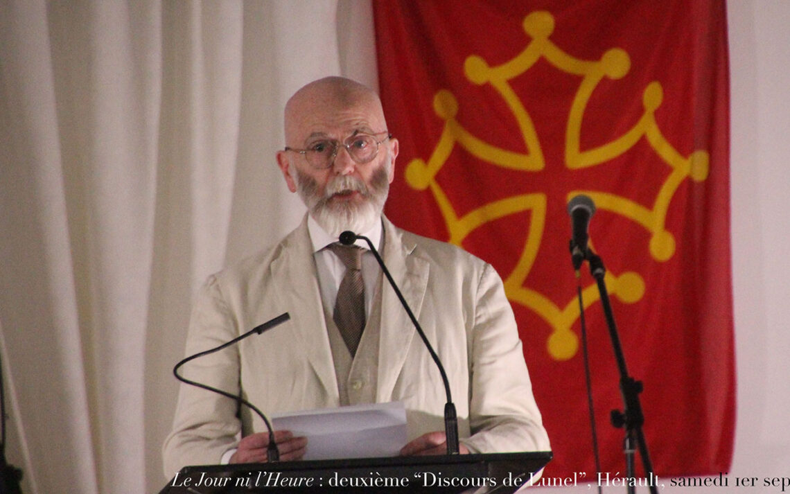 På spørsmål om hva som gir håp i denne mørke og kaotiske æra, svarer Renaud Camus «fortvilelsen».