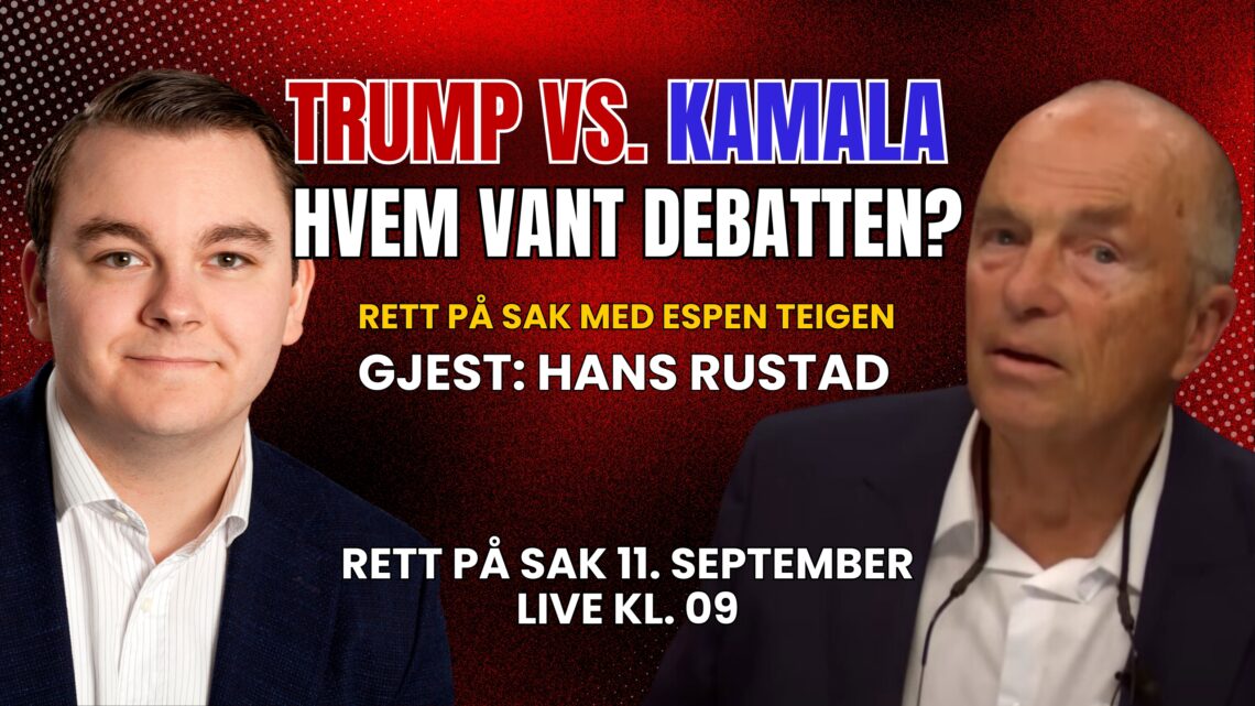 Onsdag 11. september kl. 09.00 er det ett stort tema som gjelder: Presidentdebatten i USA. Donald Trump har karret seg oppover på målingene, og guruen Nate Silver anslår omtrent 65 prosent sannsynlighet for å vinne. Skandalen i Ohio med innvandringen ute av kontroll skaper en ramme for diskusjonen som er i favør av Donald Trump.