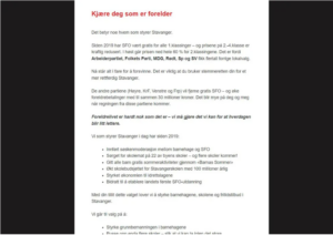 Den aktuelle e-posten ble sendt 20. august 2023 i forbindelse med kommunevalget, og mottakerne skal ha vært foreldre til barn i barnehager og skoler i Stavanger kommune. Foreldrenes kontaktinformasjon skal ha blitt utlevert av Stavanger kommune i medhold av offentlighetsloven.