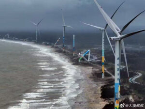 Vindmøllepark i Kina blåst overende av voldsom vind