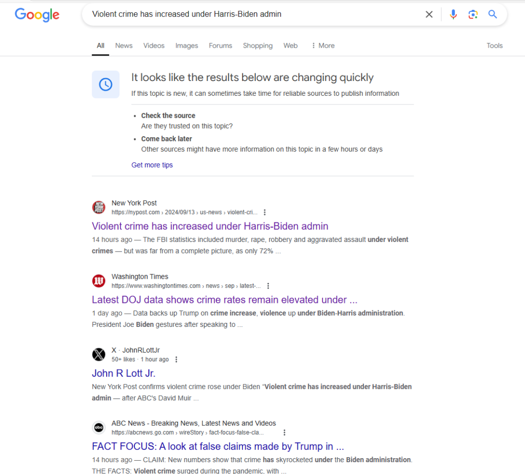 (Google har sørget for at ABC News’ faktasjekk av Trumps påstand er fremtredende på søkesiden.)