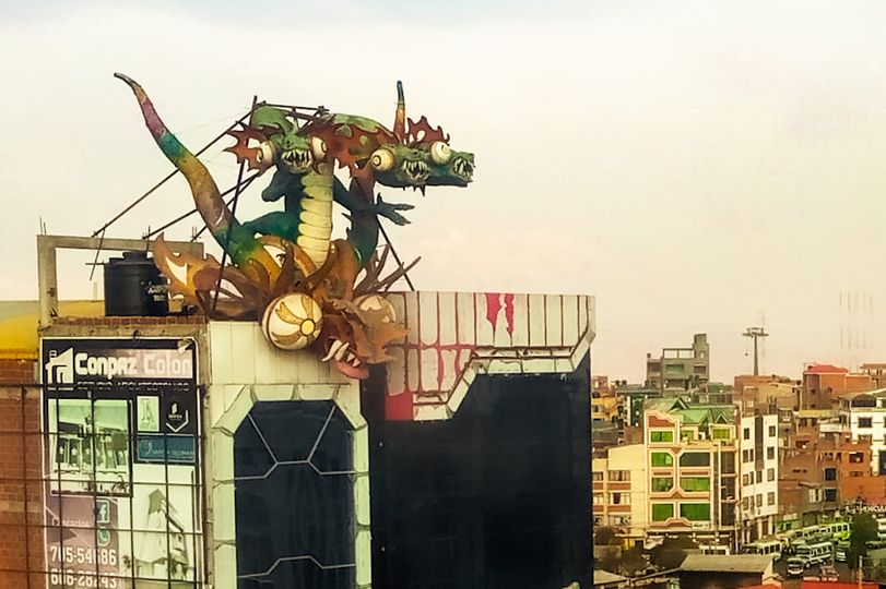Den vanlige utsikten til de majestetiske Andesfjellene er helt borte bak røyken, men alteños’ særegne sans for å pynte husene sine ser vi jo.
