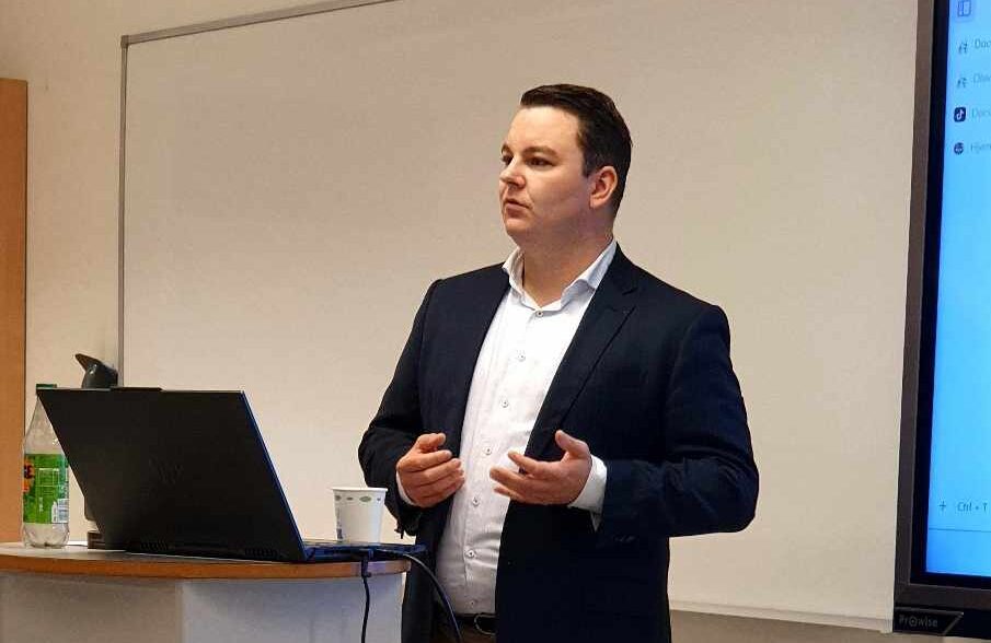 Journalisten innledet møtet, før det ble spørsmål og fri diskusjon med kaffe og kaker.